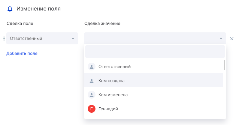 Пример использования: добавьте исполнительного директора или руководителя отдела продаж в сделку наблюдателем, если ее сумма больше 150 000 р. Или после перехода задачи по созданию сайта замените в соисполнителях дизайнера на верстальщика.