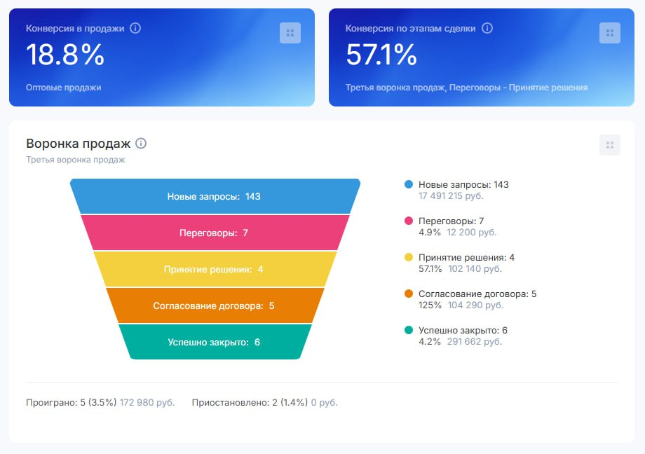 ➖ процент конверсии лидов в продажи;